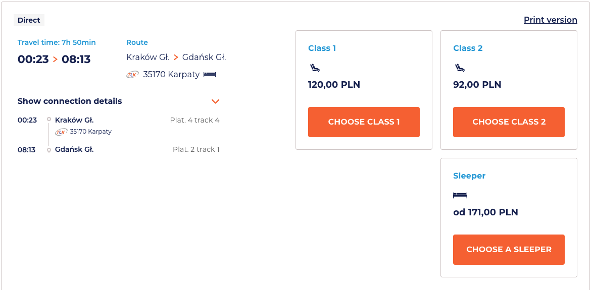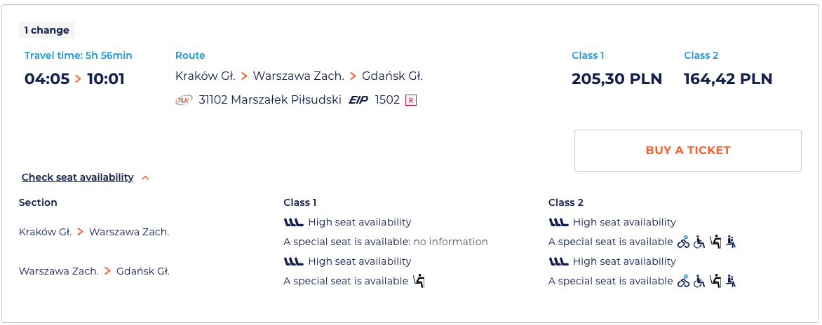@volandevsrat Посмотрел, койкоместо у нас вообще от 170 злотых начинается, вообще есть только в одном поезде из трёх, а в остальных будь добр сиди 6 часов и не возникай и за все 200+ злотых.